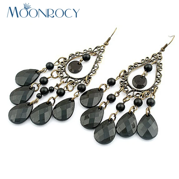 .Pictures of Free Shipping Fashion Jewelry Wholesale 18k Gold Plated Black Crystal Earrings drop for women girls vintage Wedding Gift