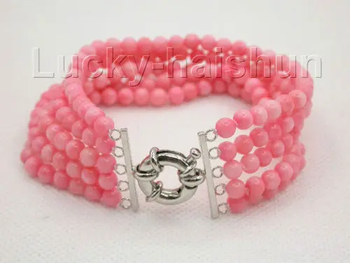 shipping>>>>Genuine 5row 8" round pink coral beads Bracelet j8671 new >>free shipping -Bride jewelry free shipping