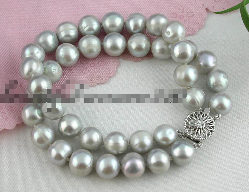 FREE SHIPPING z1618 2row 8" 11mm gray fw round pearl bracelet bangle Natural >>free shipping -Bride jewelry free shipping